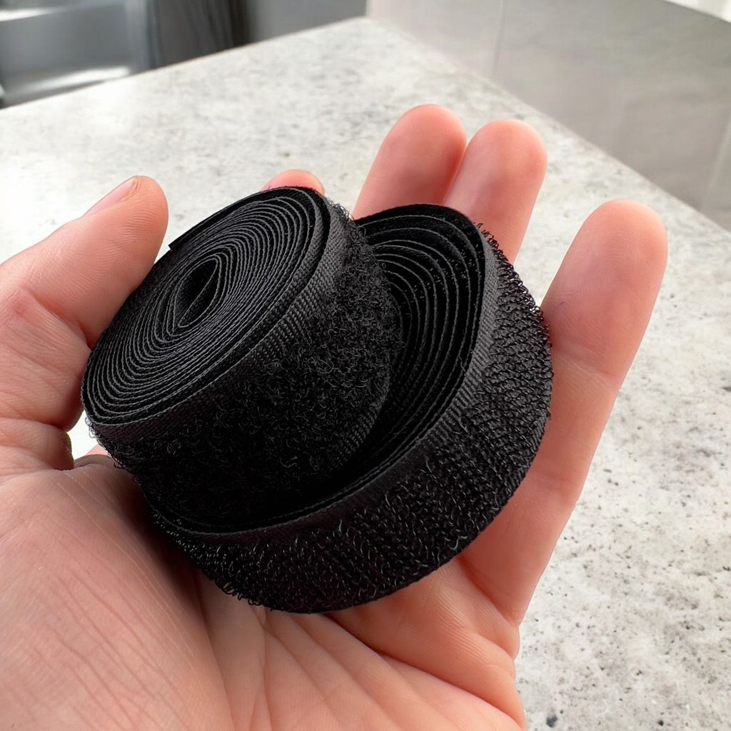 - Fjern en del af beskyttelsesfilmen fra klæbesiden og placer velcroen, hvor du ønsker det.
