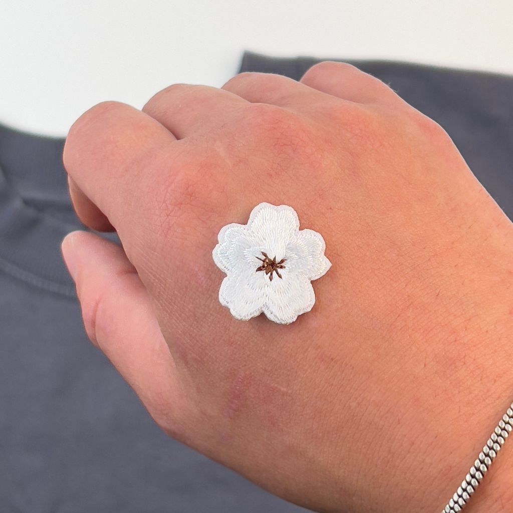 Ge dina kläder och accessoarer en söt och subtil touch med vårt charmiga tygmärke som föreställer en liten blomma. Detta tygmärke finns i både rosa och vitt, vilket gör det enkelt att matcha med olika plagg och stilar.